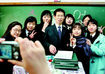 A group of high school seniors pose for a picture with one of their teachers after a graduation ceremony in Seoul on February 1.
